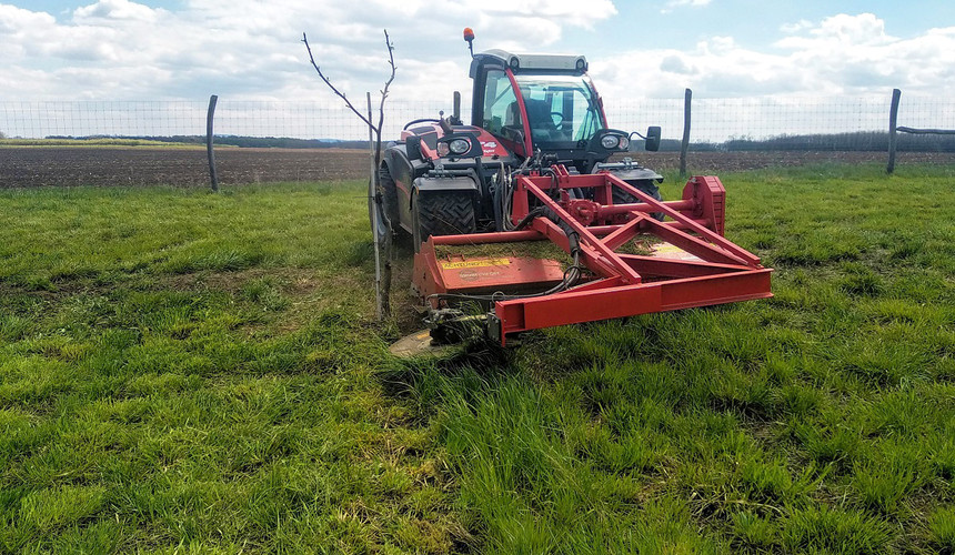 Ide o špeciálny nosič náradia Sauerburger Grip, ktorý sme nakúpili v roku 2019 spolu s čelným mulčovačom Sauerburger Polaris 2450 aj so zadným mulčovačom Sauerburger Orbit 1800. Používame ho v ekológii na mulčovanie burín v orechových sadoch. Na tento účel sme predtým používali veľký traktor s mulčovačmi. Tento stroj sa nám zapáčil hlavne pre jeho kompaktné rozmery. Oproti traktoru je nižší a tým pádom sa zmestí aj pod koruny stromov. Mulčovače sa dajú vysúvať do boku s čím dosiahneme širší pracovný záber a dokážeme pomulčovať riadky aj medzi stromami.